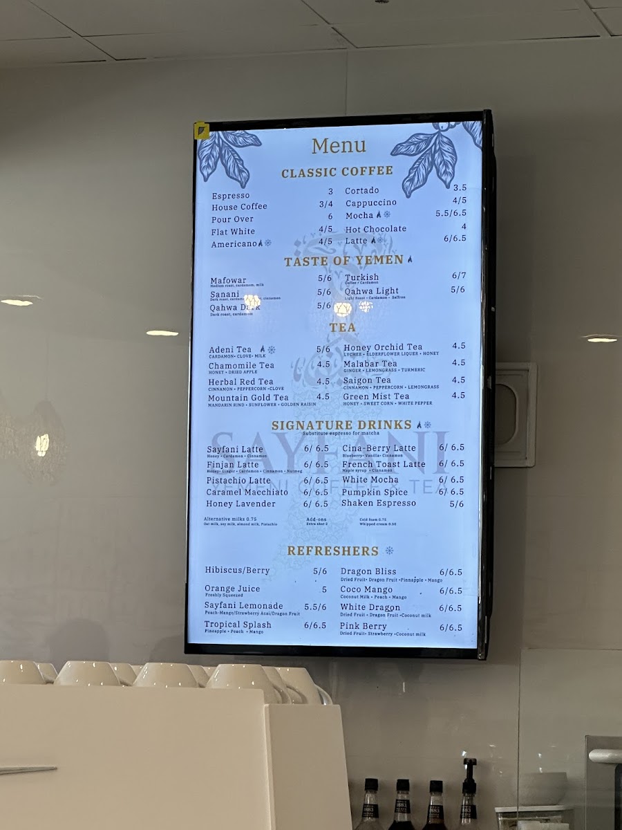 Sayfani Yemeni Coffee House Menu (2025 Update)